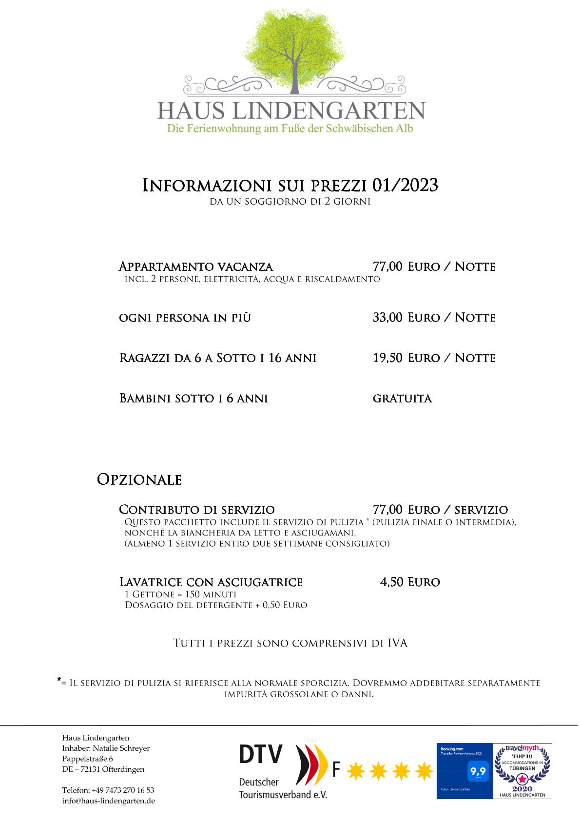 Qui trovate tutte le informazioni sui nostri prezzi e servizi.